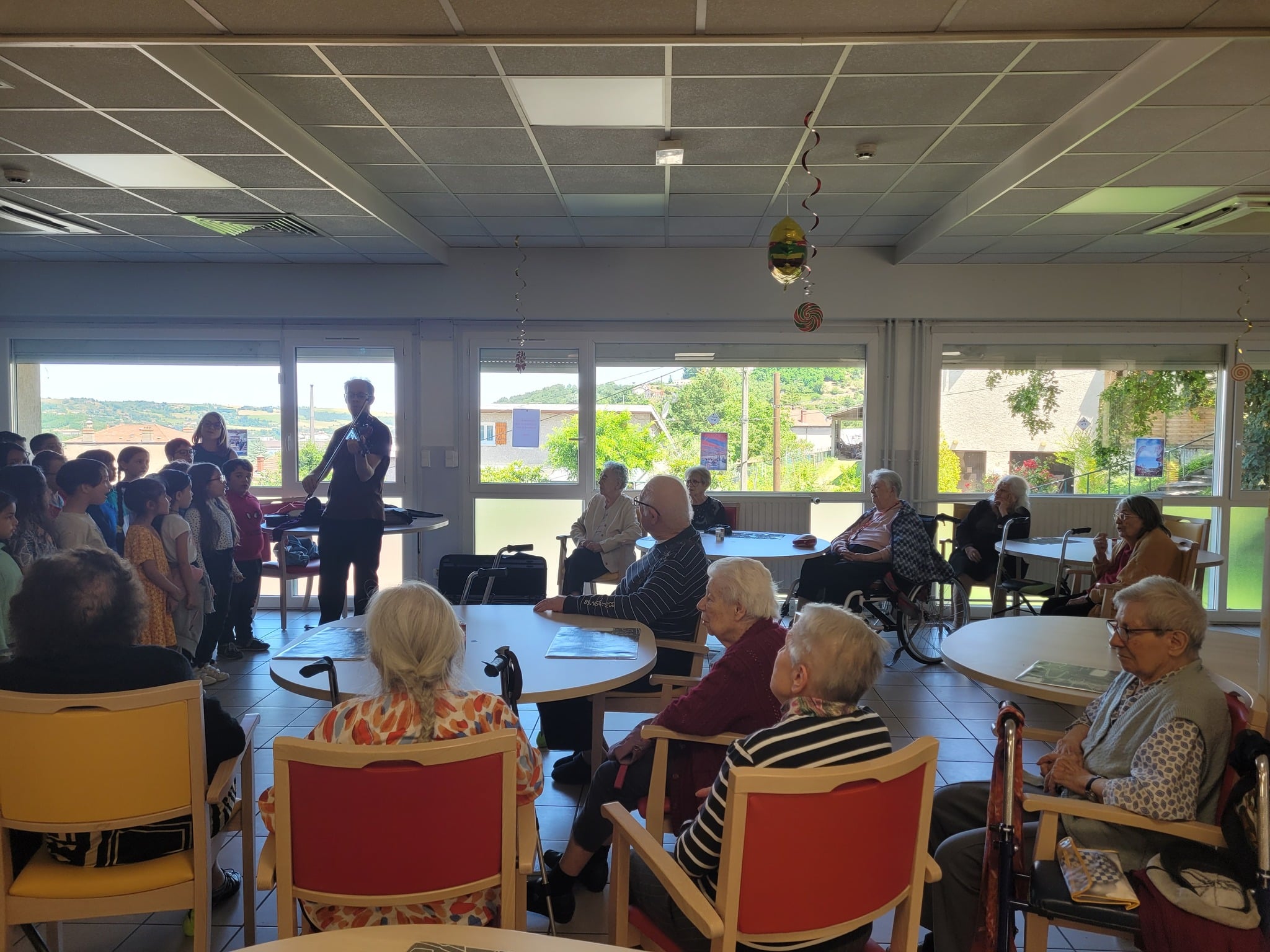 Pour le plus grand bonheur de nos résidents, nous avons cette année eu la chance d’accueillir au Pôle d’Activités et de Soins Adaptés (PASA) de notre EHPAD des enfants de CE1 de l’école Alice Escoffier de Rive-de-Gier.